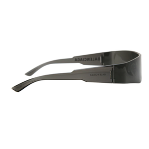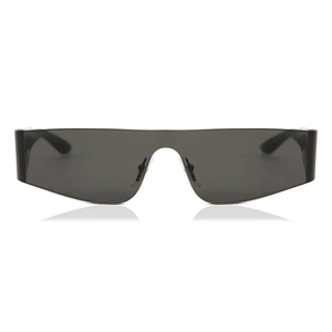 The Balenciaga BB0041S sunglasses are a bold fusion of futuristic aesthetics and signature house codes. With a fully wrapped shield-style lens that stretches seamlessly from edge to edge, this design offers a limitless, avant-garde silhouette—an embodiment of movement and modernity. Enamelled Balenciaga lettering adorns the temples, while adjustable metal nose pads featuring the iconic 'BB' logo and silicone finish ensure a tailored, comfortable fit. Available in a striking black frame with grey lenses and a silver-on-silver option, the BB0041S redefines unisex eyewear with high-impact style. The BB0041S 001 model is available now at Urban Sunglasses, complete with an official 1-year Balenciaga warranty. Note: Product packaging is for illustrative purposes and may vary.