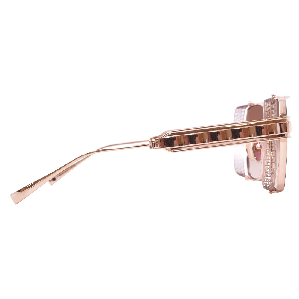 In the 1940s, Pierre Balmain changed the course of fashion history when he founded his namesake maison at 44 rue François Premier, in the heart of Paris’ prestigious “Golden Triangle.” Inspired by the Haussmannian architecture of this historic flagship, the Balmain PREMIER sunglasses reinterpret timeless Parisian elegance in a bold navigator silhouette, distinguished by its double-bar nose bridge. Every detail reflects Balmain’s luxury codes — from the laser-engraved logo to the Labyrinth pattern adorning the sleek side-caps, symbolising the house’s storied heritage. The Unisex BALMAIN Sunglasses PREMIER (BPS-155B) is available at Urban Sunglasses. This model features a rose gold and brown enamel frame, paired with dark chocolate brown to clear black mirror lenses. Each pair comes with an official Balmain 2-year guarantee. Please note: Packaging images are for illustrative purposes only.