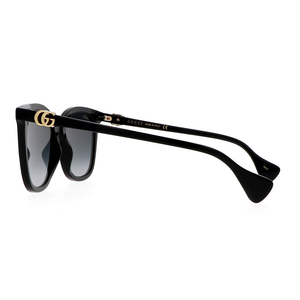 The Gucci GG1071S-001 Sunglasses bring a refined touch of luxury to any fashion-forward wardrobe. Crafted from full acetate, the frame offers durability, comfort, and a polished finish that enhances its versatility. The squared cat-eye silhouette flatters a variety of face shapes by balancing proportions and accentuating natural features. Subtle yet sophisticated, the temples are finished with Gucci’s iconic metallic GG logo for a signature statement of elegance. The Women’s Gucci Sunglasses GG1071S (001 55) are available now at Urban Sunglasses, showcasing a black frame with graduated grey lenses for a chic, timeless look. Each pair includes the official Gucci 2-year manufacturer’s warranty, ensuring authenticity and superior quality. Please note: Packaging images are for illustrative purposes only.