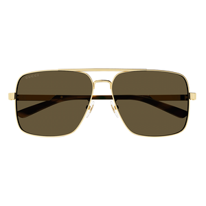 Gucci GG1289S Sunglasses are inspired by a vintage caravan silhouette, reimagined with a sleek modern fit. Crafted from premium metal, the design features the iconic Gucci ‘GG’ interlocking logo on both temples, along with adjustable nose pieces for lasting comfort. Enamelled stripes on the temples pay homage to Gucci’s signature web, adding a subtle yet luxurious detail. The gold and brown frame pairs effortlessly with the brown lenses, making these sunglasses a timeless and versatile accessory. The Mens Gucci Sunglasses GG1289S (GG1289S 002 62) is available at Urban Sunglasses and comes with an official Gucci 2-year guarantee. Please note: Packaging images are for illustrative purposes only.