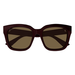 The Gucci GG1338S is a bold oversized square frame crafted from premium acetate, embodying a look that is both modern and timeless. The iconic interlocking ‘GG’ logo is proudly displayed on both temples, adding a touch of unmistakable Gucci elegance. The Womens Gucci GG1338S (005 54) is presented in a rich burgundy frame paired with warm brown lenses, delivering effortless sophistication. This model comes complete with an official Gucci sunglasses case and a 2-year manufacturer’s warranty for peace of mind. Please note: Packaging images are for illustrative purposes only.