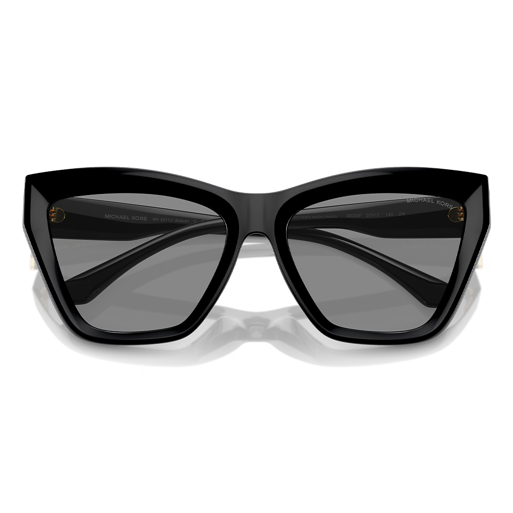 The Michael Kors Dubai sunglasses feature a sleek black frame paired with dark grey lenses, offering a bold and timeless look. Perfect for everyday wear, these shades combine fashion-forward design with reliable sun protection. Available now at Urban Sunglasses, the Dubai MK2211U 30053F comes with an official Michael Kors 2-year guarantee. Note: Product packaging shown is for illustrative purposes only and may vary.