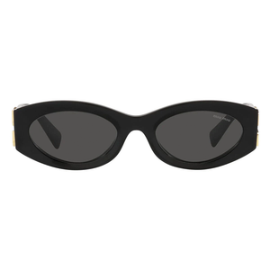 The Women’s Miu Miu Sunglasses MU 11WS (1AB5S0 54) exude elegance and modern flair. Crafted from premium acetate, these sunglasses feature an oval front with chunky arms, accented by the gold Miu Miu lettering for a stylish finish. Available in classic colourways including black with dark grey lenses and with brown lenses, the MU 11WS 1AB5S0 54 features a black frame paired with dark grey lenses, making it a versatile and chic accessory. Now available at Urban Sunglasses, each pair comes with the official Miu Miu 2-year manufacturer’s warranty, ensuring authenticity and premium quality. Please note: Packaging images are for illustrative purposes only.