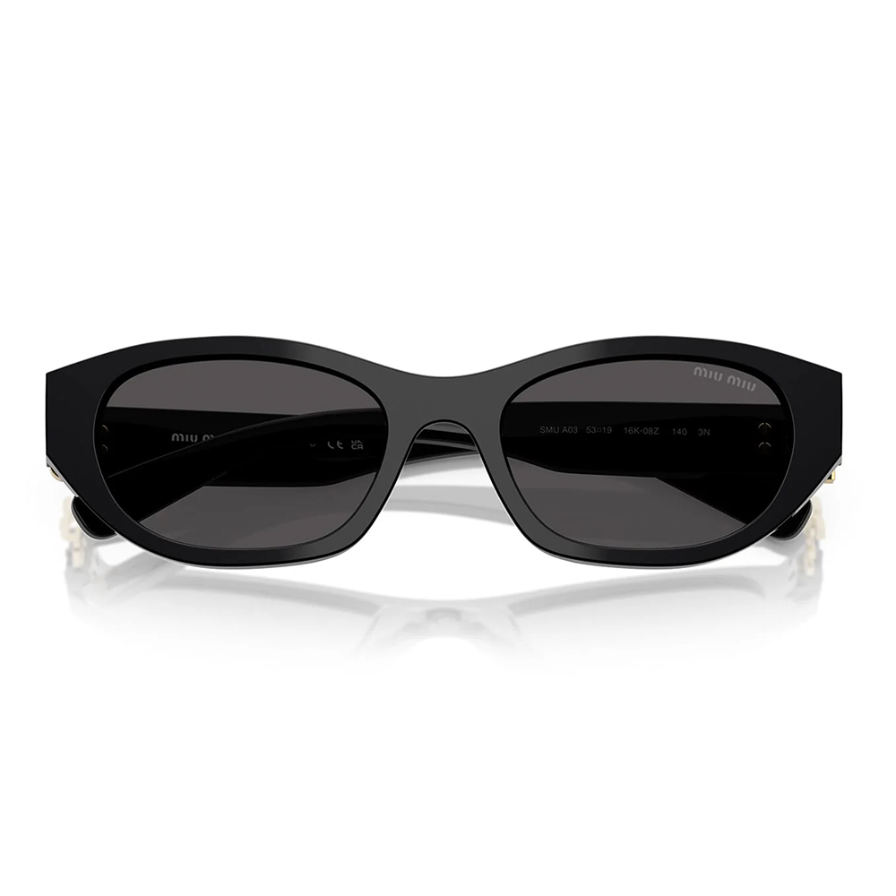 The Women’s Miu Miu Sunglasses MU A03S (16K08Z 53) feature a black frame paired with dark grey lenses, offering a sleek and elegant accessory for any outfit. Crafted from premium materials, these sunglasses provide full UV protection while showcasing Miu Miu’s signature style and quality. Now available at Urban Sunglasses, the MU A03S 16K08Z 53 comes with the official Miu Miu 2-year manufacturer’s warranty, ensuring authenticity and long-lasting quality. Please note: Packaging images are for illustrative purposes only.