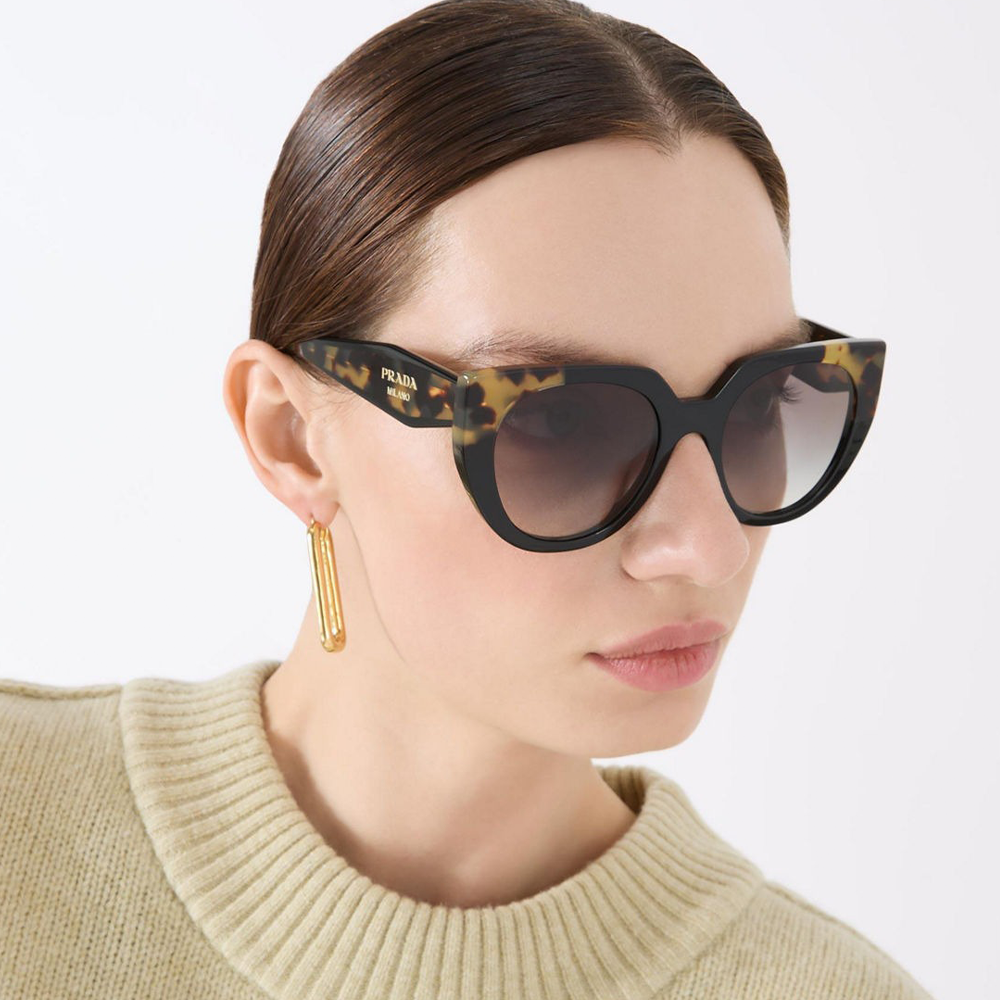 Prada PR14WS Sunglasses are a geometric, stylish shape designed for women with an edge. Whether you’re wearing a suit, jeans or a swimsuit, these Prada PR14WS sunglasses are perfect to match with any outfit, all year round. The Womens Prada Sunglasses PR14WS (PR14WS 3890A7) is available to buy from Urban Sunglasses. It features a frame which is black/medium tortoise and has a lens which is grey gradient. The PR14WS 3890A7 comes with an official Prada Sunglasses 2 year guarantee. Note: Packaging images are example packaging only.