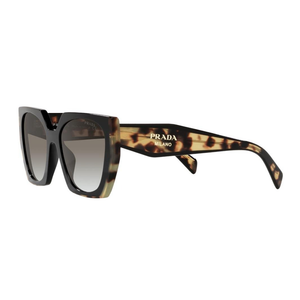 The Prada PR15WS sunglasses combine subtle elegance with a modern edge. Crafted from premium materials and finished with exceptional attention to detail, they offer both durability and comfort. This model features a geometric cat-eye shape with a black tortoise frame and grey gradient lenses that ensure 100% UV protection. The women’s Prada PR15WS sunglasses (model PR15WS 3890A7) are available to purchase at Urban Sunglasses. They come with an official 2-year Prada sunglasses guarantee. Please note: Packaging images are for illustration purposes only.