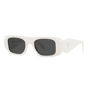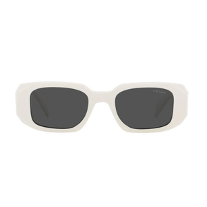 Introducing the Prada PR17WS sunglasses — a bold, geometric design made to suit both men and women. Whether you're dressed in a suit, casual in jeans, or relaxing by the pool, these versatile shades add instant style to any look. Recently seen on Travis Barker, they’re the perfect accessory to bring a touch of flair to your wardrobe. The women’s Prada PR17WS sunglasses (model PR17WS 1425S0) are available to purchase from Urban Sunglasses. This version features an ivory frame with dark grey lenses and includes an official 2-year Prada sunglasses guarantee. Please note: Packaging images are for illustration purposes only.