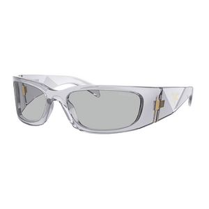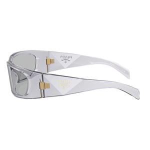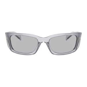 The Prada PRA14S Women’s Sunglasses (model PRA14S 12R30B) are available to purchase from Urban Sunglasses. This design features a transparent grey frame combined with dark grey lenses, offering a sleek and modern aesthetic. The sunglasses come with an official 2-year Prada warranty. Please note: Packaging images are for illustration purposes only.