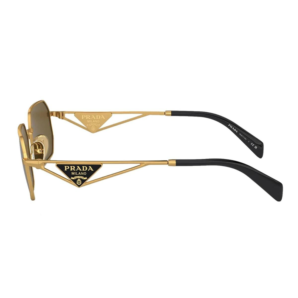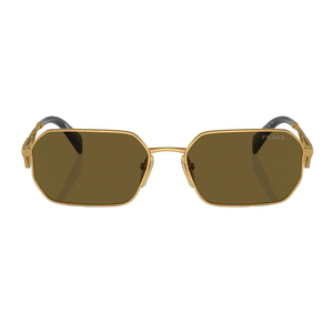 The Prada PRA51S Women’s Sunglasses (model PRA51S 15N01T) are available to purchase from Urban Sunglasses. This model features a matte gold frame paired with dark brown lenses for a classic, sophisticated look. The sunglasses include an official 2-year Prada warranty. Please note: Packaging images are for illustration purposes only.