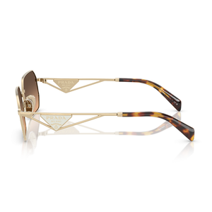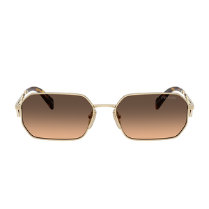 The Prada PRA51S sunglasses for women (model ZVN50C) can be purchased from Urban Sunglasses. They showcase a pale gold frame complemented by brown-grey gradient lenses. This model is backed by Prada’s official 2-year sunglasses warranty. Please note: Packaging images are for illustration purposes only.
