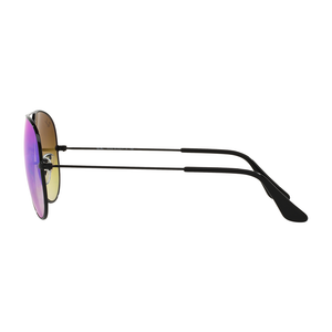 One of the most iconic sunglasses in the world, the Ray-Ban Aviator RB3025 was originally designed for pilots back in 1937 and has remained a timeless symbol of style ever since. Combining the classic aviator silhouette with premium quality and comfort, this model offers a contemporary update with its sleek shiny black metal frame. Adjustable nose pads and comfortable ear socks ensure a secure fit for all-day wear. The graduated blue mirror lenses not only provide a distinctive and modern look but also reduce glare and enhance visual comfort in low to medium light conditions. With their reflective coating, they add a bold edge while protecting your eyes — making them both practical and stylish. The Unisex Ray-Ban Sunglasses Aviator RB3025 (Aviator RB3025 002/4O) is available to buy from Urban Sunglasses. It features a shiny black frame with graduated blue mirror lenses. The Aviator RB3025 002/4O comes with an official Ray-Ban 2-year guarantee. Please note: Packaging images are for illustrative purposes only.