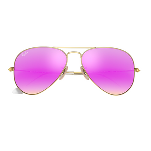 Ray-Ban Aviator RB3025 Sunglasses embody timeless style with a contemporary twist, making them a standout choice for both men and women. Handcrafted in Italy, this iconic design features a sleek gold metal frame paired with comfortable nose pads and white ear socks for an effortless fit. The striking pink mirrored polarised lenses not only deliver a bold, fashion-forward look but also reduce glare and provide superior UV protection, ensuring both style and performance. Perfect for everyday wear or statement occasions, these Aviators are a true classic reimagined. The Unisex Ray-Ban Sunglasses Aviator RB3025 (Aviator RB3025 112/1Q) is available at Urban Sunglasses and comes with an official Ray-Ban 2-year guarantee. Please note: Packaging images are for illustrative purposes only.