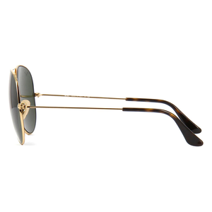 The Ray-Ban Aviator RB3025 is a timeless icon with a modern touch of style. This large unisex design features a sleek gold frame with slim arms and black ear socks, paired with classic dark green lenses. A must-have accessory that never goes out of fashion. The Ray-Ban Aviator RB3025 (181) is available now at Urban Sunglasses, complete with an official 2-year Ray-Ban guarantee. Please note: Packaging images are for illustrative purposes only.