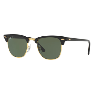 The Ray-Ban Clubmaster RB3016 sunglasses (RB3016 901/58) bring a bold update to a timeless design, blending vintage inspiration with modern sophistication. This unisex style showcases a sleek jet-black acetate upper frame and matching arms, accented by a refined gold wire rim and bridge for a polished finish. The crystal green polarised lenses not only highlight the iconic Ray-Ban logo but also deliver superior glare reduction and 100% UV protection, making them perfect for everyday wear. With their versatile aesthetic, these sunglasses suit both men and women who value style, comfort, and functionality. The Mens Ray-Ban Sunglasses Clubmaster RB3016 (RB3016 901/58) is available at Urban Sunglasses and comes with an official Ray-Ban 2-year guarantee. Please note: Packaging images are for illustrative purposes only.