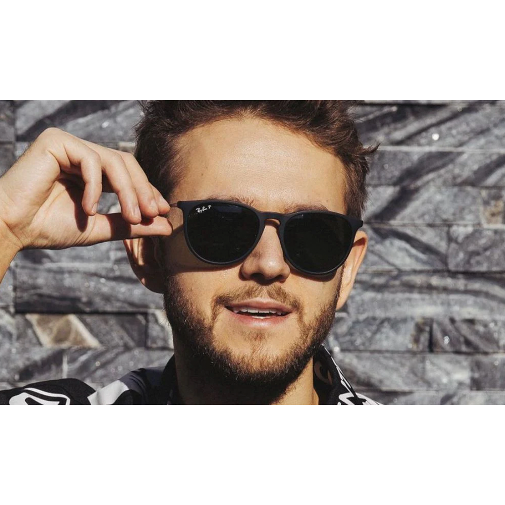 A bold take on the classic Ray-Ban Erika, this design features an upswept rubberised black frame with slim black arms, complete with the iconic Ray-Ban logo. The grey gradient lenses add a sleek finish while ensuring style and comfort. The Unisex Ray-Ban Sunglasses Erika (Erika RB4171 622/8G) is available to buy from Urban Sunglasses. It features a frame which is rubberised black with black arms and has a lens which is graduated grey. The Erika RB4171 622/8G comes with an official Ray-Ban Sunglasses 2-year guarantee. Please note: Packaging images are for illustrative purposes only.