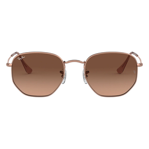 The Unisex Ray-Ban Hexagonal RB3548N (9069A5 51) features a copper metal frame with pink to brown gradient lenses. Available now at Urban Sunglasses with an official 2-year Ray-Ban guarantee. Please note: Packaging images are for illustrative purposes only.