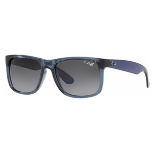 The Mens Ray-Ban Sunglasses Justin RB4165 (Justin RB4165 6596T3 54) feature a transparent blue frame paired with grey gradient polarised lenses for comfort and glare reduction. Available now at Urban Sunglasses with an official 2-year Ray-Ban guarantee. Please note: Packaging images are for illustrative purposes only.