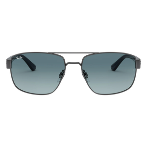 The Mens Ray-Ban RB3663 sunglasses feature a gunmetal frame with blue arms and blue gradient grey lenses. Available at Urban Sunglasses with a 2-year Ray-Ban guarantee. Please note: Packaging images are for illustrative purposes only.
