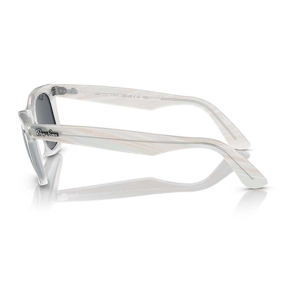 Ray-Ban Wayfarer RB2140 gets a futuristic upgrade with Transitions® light-responsive technology. The striped grey frame adapts to UV light, while the blue lenses deliver a bold, modern finish. A unisex classic reimagined for today. The Ray-Ban Wayfarer RB2140 (1407R5) is available now at Urban Sunglasses with an official 2-year Ray-Ban guarantee. Please note: Packaging images are for illustrative purposes only.