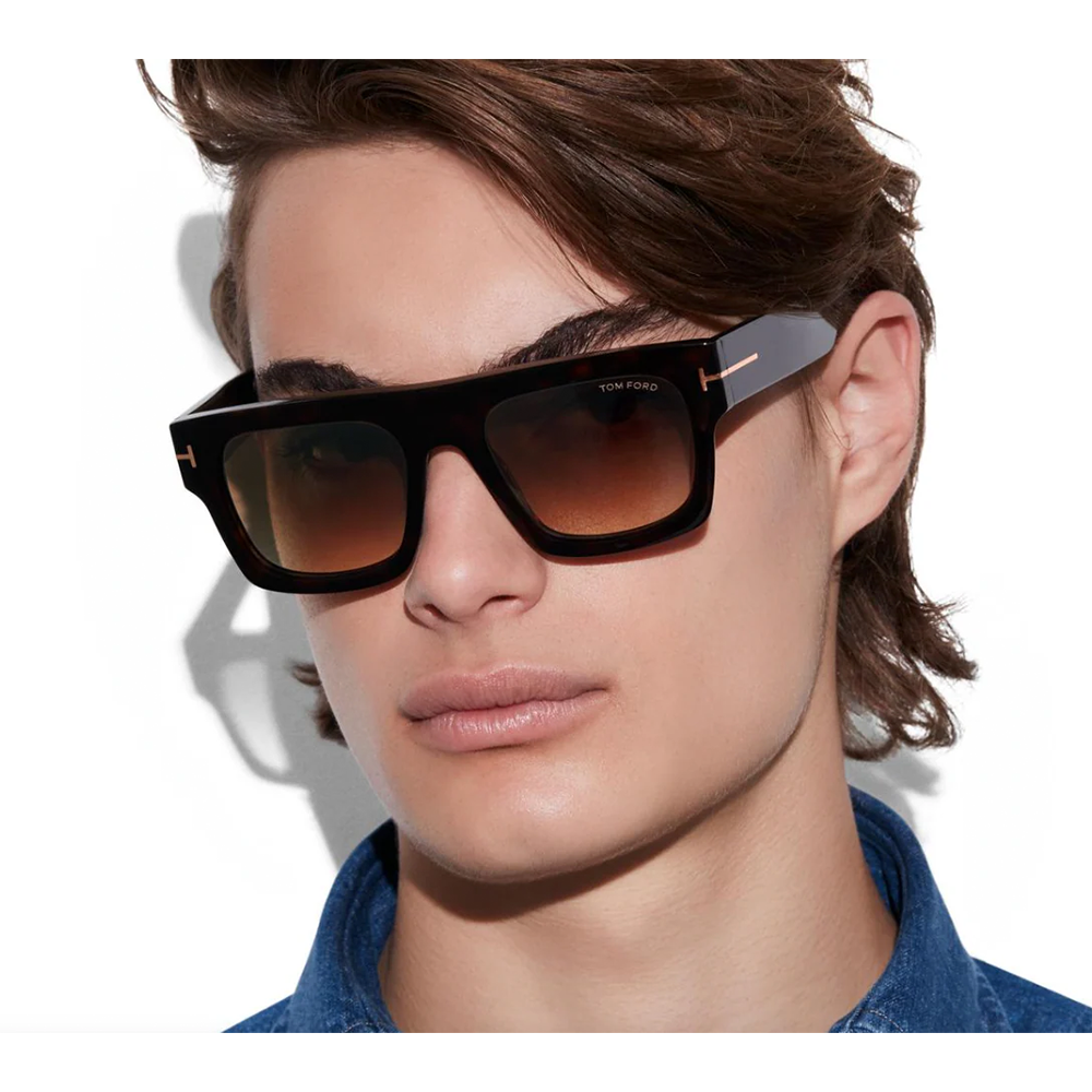 The Tom Ford Fausto sunglasses bring a modern edge to a classic square frame, designed to complement and define the face shape. Crafted from premium dark havana acetate, they feature brown gradient lenses and the iconic Tom Ford logo at the temples for a refined finish. Available now at Urban Sunglasses, the Fausto FT0711 52F comes with a 2-year Tom Ford guarantee. Note: Product packaging shown is for illustrative purposes only and may vary.